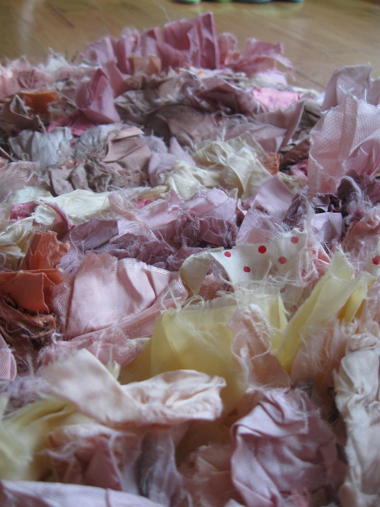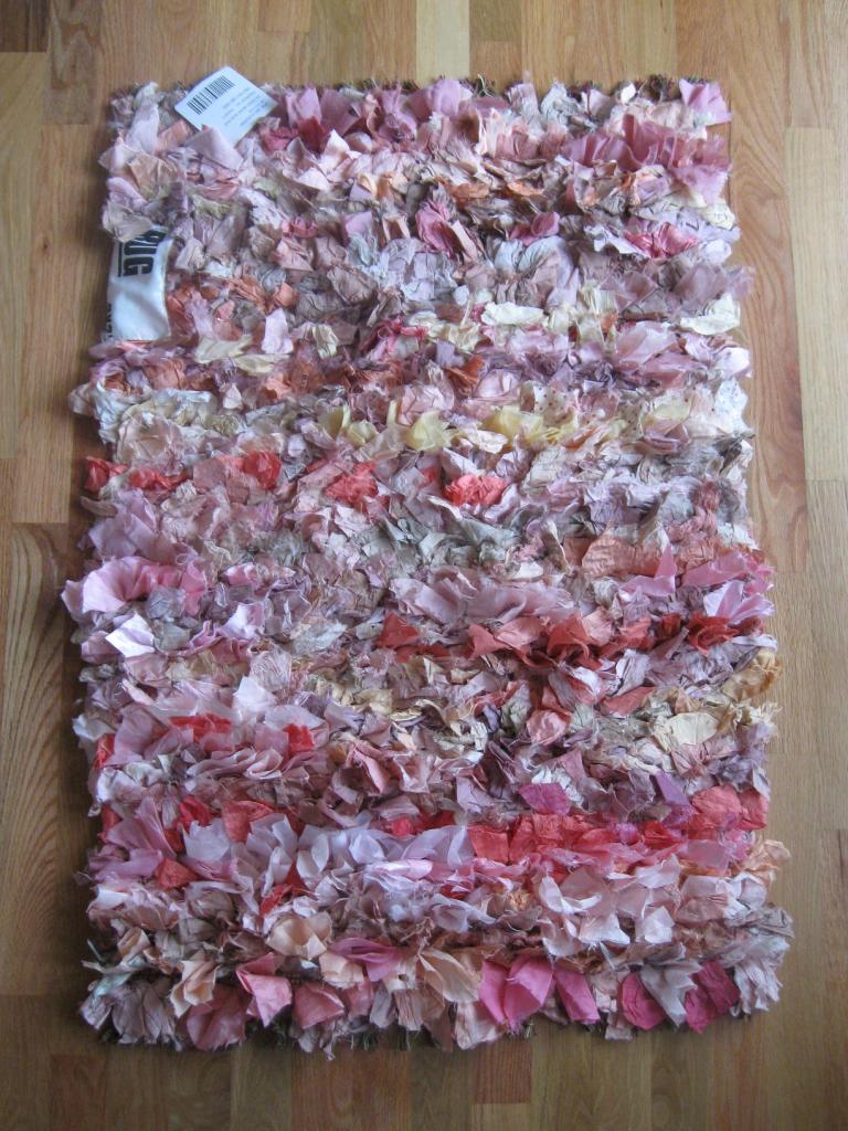 See how pretty this rug is! I usually don’t get pink for her, but this isn’t just plain pink. If you look close, you can see dark rose, light pink, cream, yellow and dusty lavender. There are even really cute bits with polka dots. So they are really too cute to be sitting in a box.