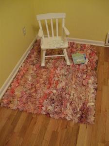 I was so excited after completing the rug that I snuck into Little Lady’s room when she was sleeping to quietly rearrange. But the best compliment came the next day. I put her down on the floor, and she headed right for the rug. She sat down in the middle of the rug and started twirling her fingers through it. Nothing gives me crafting motivation like baby oooohs and aaaahs.