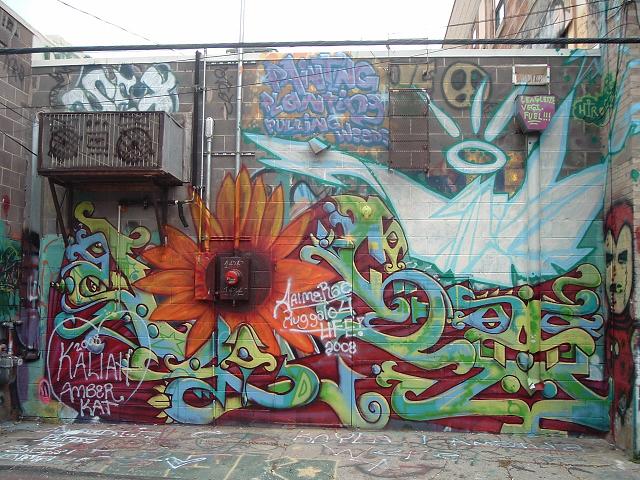 One of my favorites to date is Art Alley in downtown Rapid City, South Dakota. My husband and I went there for our first anniversary (not just the alley, the Black Hills). If you are ever in the area, I suggest you check it out. Graffiti art is a classic example of bad behavior ruining public perception of an art form. Don’t get me wrong, I think defacing property is wrong. But among all the people writing nasty words and leaving crass drawings, there are people with real talent. Given a good outlet that a community can get behind, great and beautiful pieces can be brought to light. Art Alley is a great example of just that. So enjoy a few snapshots and then get outside and wander.