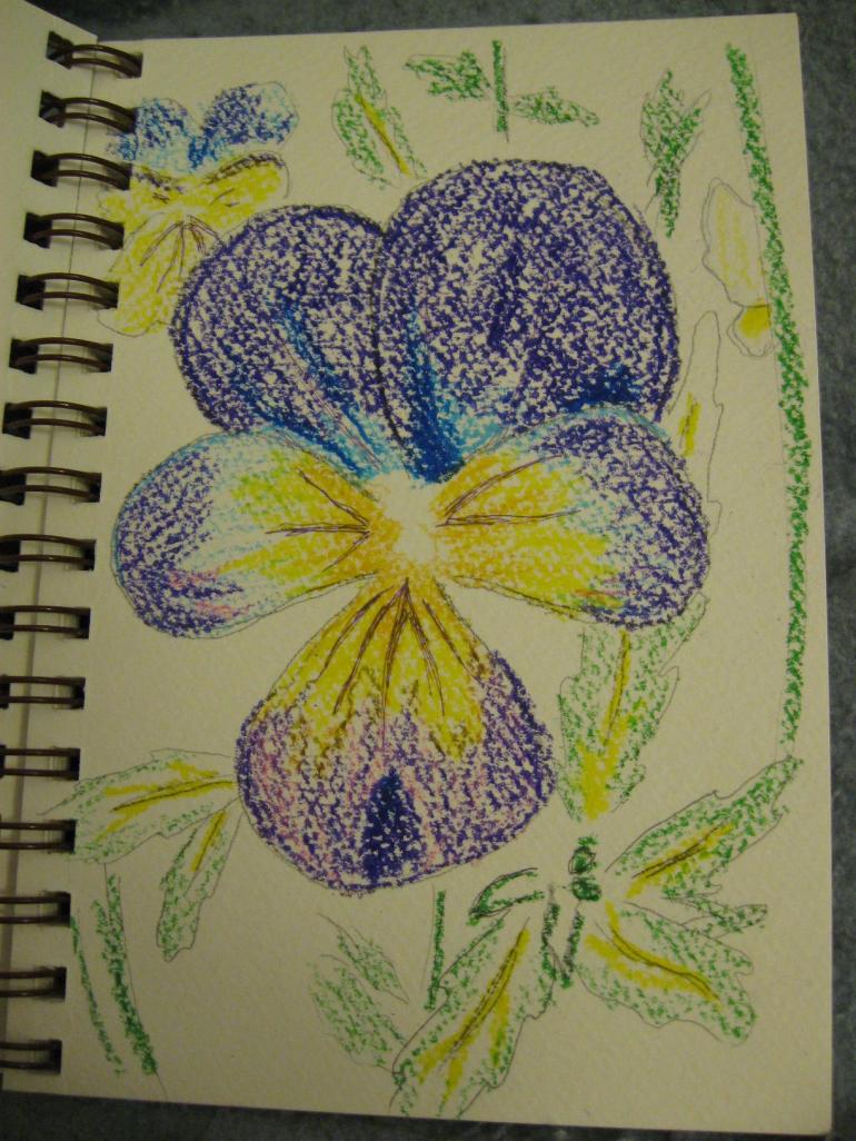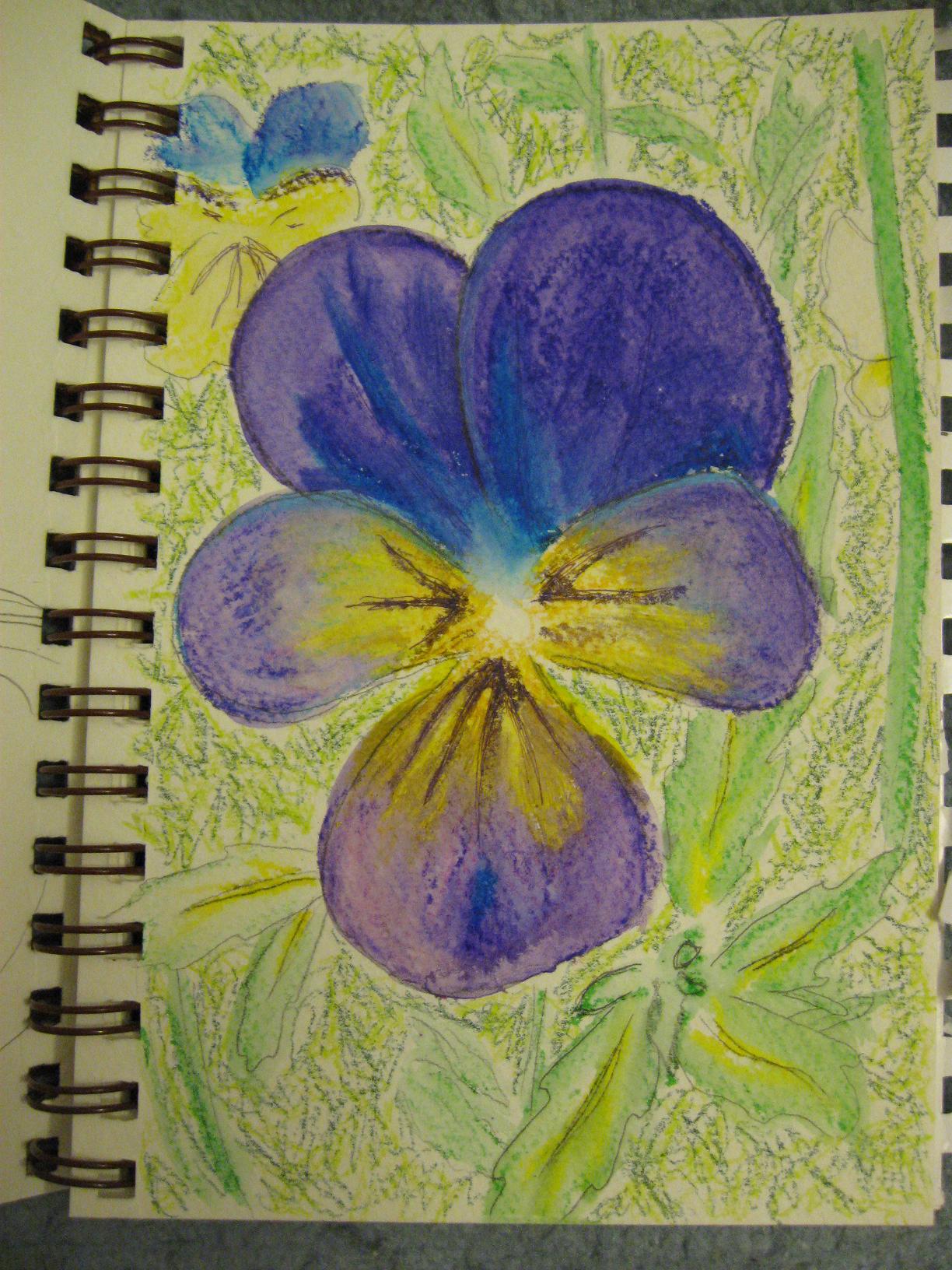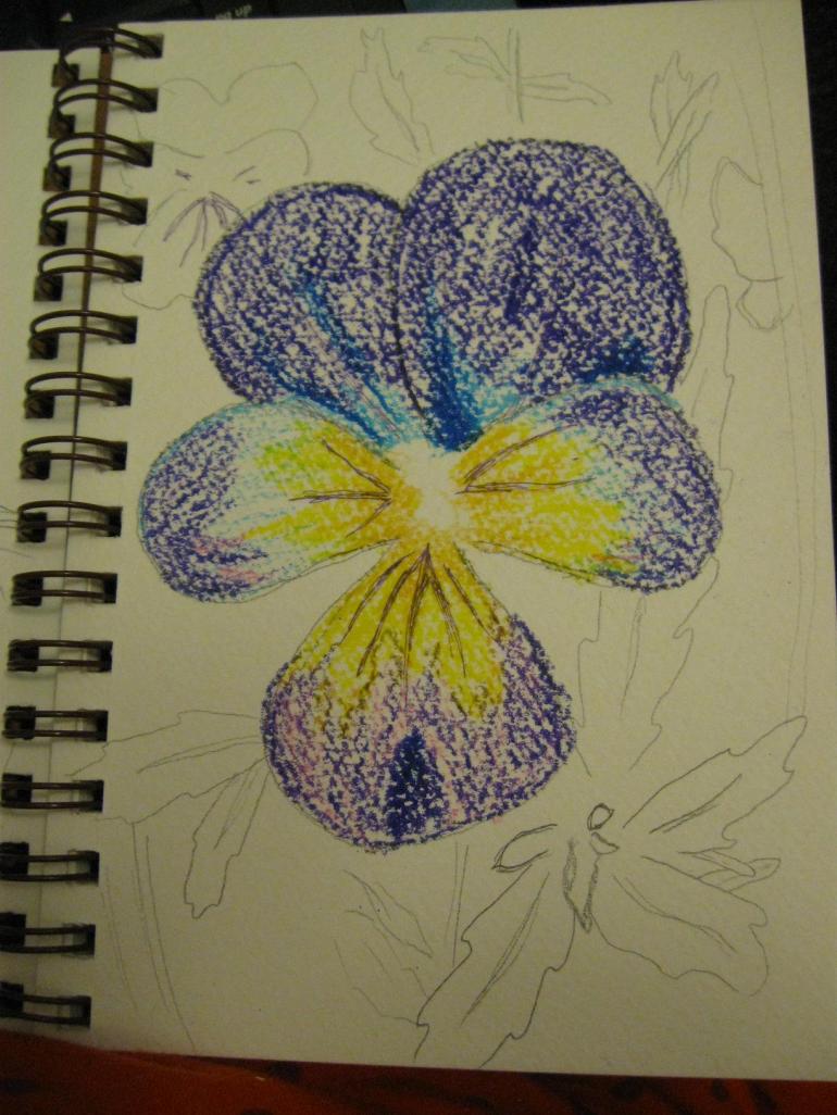 And then I went inside, put the photos on my computer (so they were big enough to see) and got to drawing. Drawing tools included drawing pencil, colored pencil, permanent markers and water soluble oil pastels.