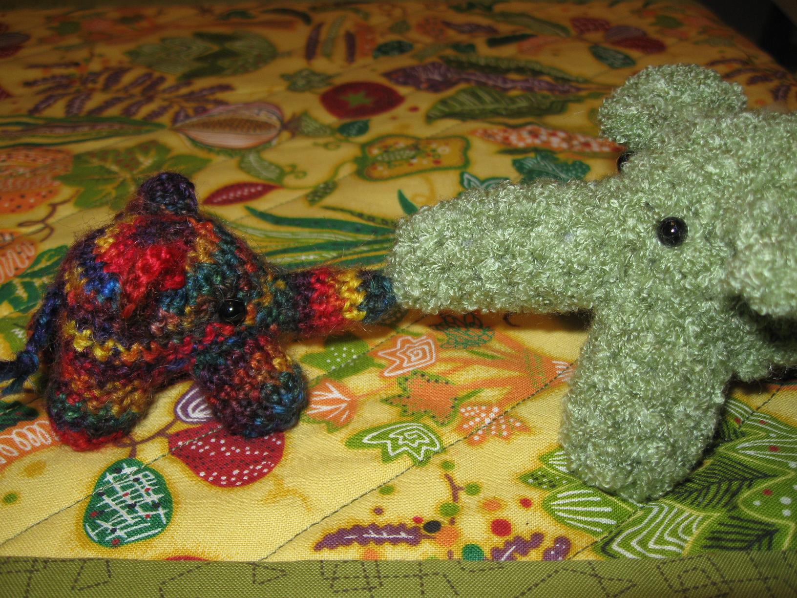These things are so stinking cute, but they are still killing my fingers. I had images in my head of making herds of these things. But I can say the cute doesn’t outweigh the aching fingers. I made a buddy for my existing ellie, and another for a friend at work. And I’m calling it quits.