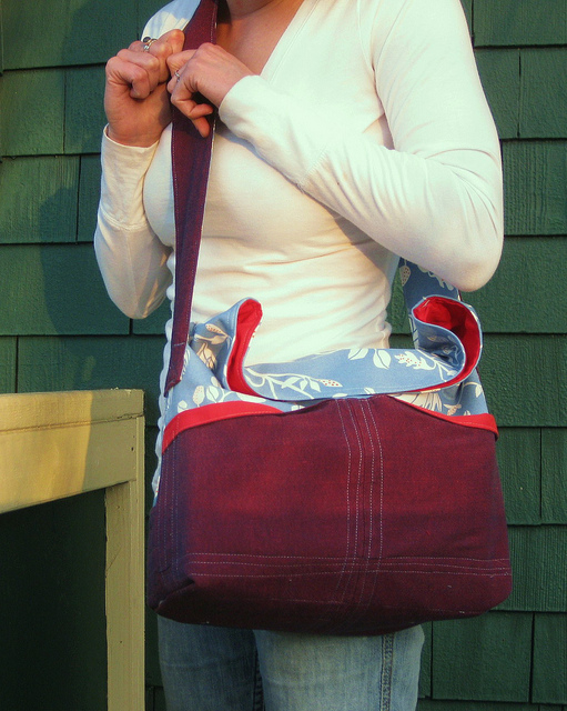 Even when I go a week without crafting, I am still on blogs finding new ideas and projects to add to my list. A few weeks ago, I saw this bag on Whip Up (it was originally posted on Fox Flat), and I have been thinking about it ever since. My other two purses are taking a serious beating from being used everyday. One is nearing three years old, and the other just passed one, so it’s not that surprising. I’ve also found over the years that I prefer bags I’ve made to the ones I buy — mainly because they always have the right number of pockets. A few months ago, Fiberworks was cleaning out some old yardages, and got a few new fabrics that I love, but haven’t found a use for yet. One of them may be perfect for making this bag.