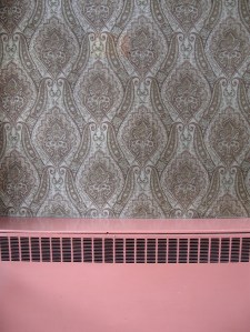 For those of you not from the area, the Babcock Theater is a wonderful downtown building that has been undergoing a massive renovation. It is a century old, and needed a lot of repairs. But fortunately, the work being done fits the existing style very well. I really could do an entire post about all things Babcock, but I will stick with only showing one more thing for now. The Babcock Apartments entryway is simple, but well-decorated. Now I wouldn’t personally choose all this for my house, but it works for the space. The color of the walls, the muted wallpapers and drapes all make the entry feel larger than it is and gives a grand impression. The color of the wallpaper is not my favorite, but I really dig the pattern.