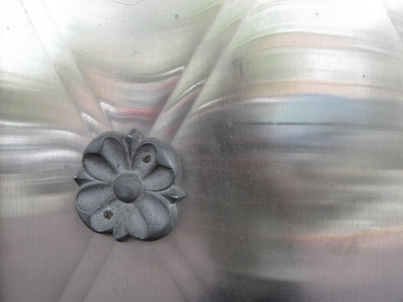 It’s a very small thing, but I really like the doorway to the Billings Dance Club. The simple variation in the glass shape and the deco lettering are a wonderful retro touch. Another small but beautiful touch are these metal rosettes. They are studded all over the ticket booth at the Babcock Theater.