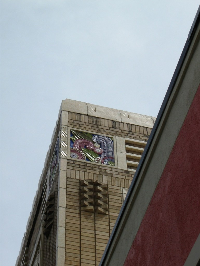 Now to wrap up with a detail that is in my top five for Downtown architecture details — these lovely purple medallions (below). As you can tell by the angle, they are really far above eye level, so they are very easy to miss. The rich, saturated greens and purples just pop so well against the surrounding brick work. Combined with the angled bricks below, these simple touches really make this building interesting. And no, I am not going to tell you which building this is. The next time you are in Downtown Billings, you need to look around more! And tell me if you ever figure it out.