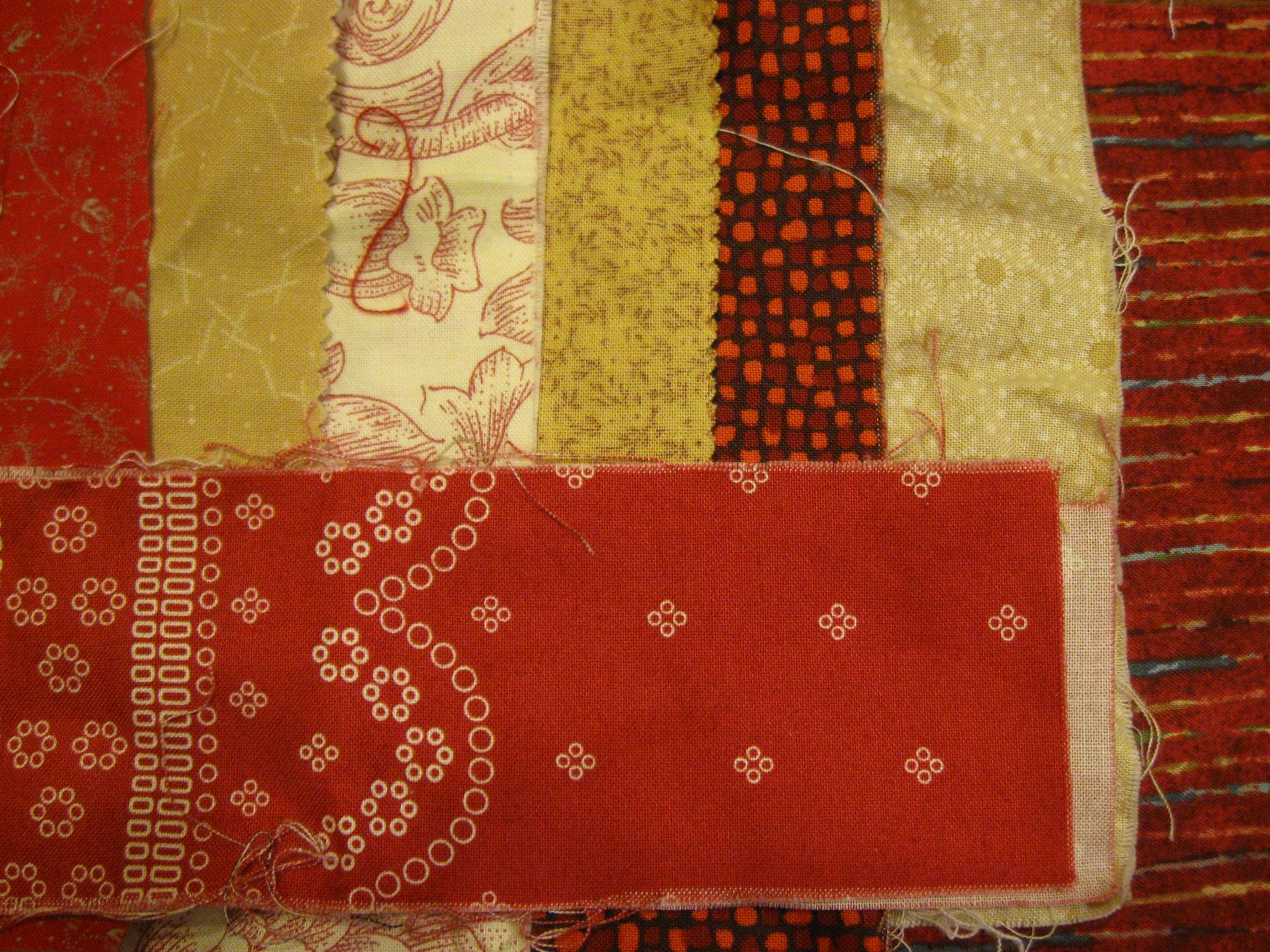 I gathered a few bits out of my big bag of scraps. After all, I don’t want their gift to look exactly like the last thing I made. A few more reds, tans and light browns will make it more interesting anyway.