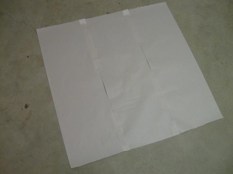 I made a paper template to help me get this quilt assembled. And then I put it in the only room in the house that had a clear floor and a working light -- my husband's hunting room. Thanks honey!