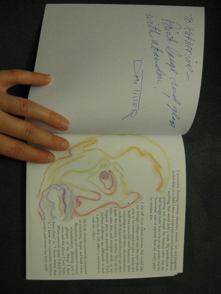 Friday I had to work overtime to cover a shift, but I was lucky enough to get out and head over to Toucan Gallery. One of my favorite painters, Don Tiller was in town to teach a class. I wasn’t able to sign up for the class, but they did have an opening reception, and I was able to spend some time talking to him one-on-one. They also had copies of his book, so naturally I bought one and asked for an autograph. That was pretty much the highlight of my week.