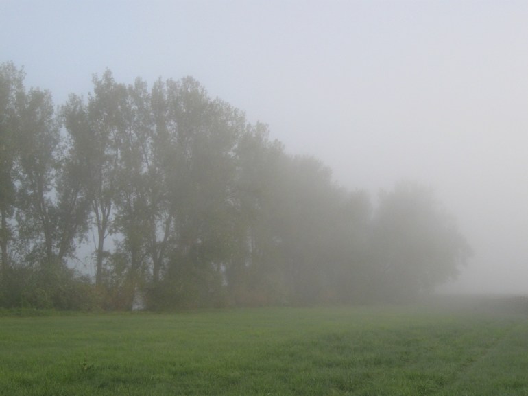 This morning I woke up to one of the heaviest fogs I have ever seen. I didn’t have to go to work until later than my usual time, so I was able to drive around and take a few pictures. Parking the car to wander and listen to the river made for a great start to the day. Managing to eat a real breakfast and get some painting done before heading to the office probably helped as well.