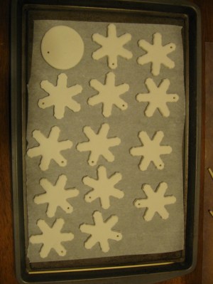 Just a simple project tonight…Model Magic snowflakes. I got the idea from Jill at Meet the Dubiens. So simple, but so pretty. Hers turned out much better, but I also plan on coating mine in a nice, light blue glitter. Then I am going to string them all together to create a snowflake garland for my dining room window. Sweet! And best of all — I finally feel like I am getting something holiday related done around here.