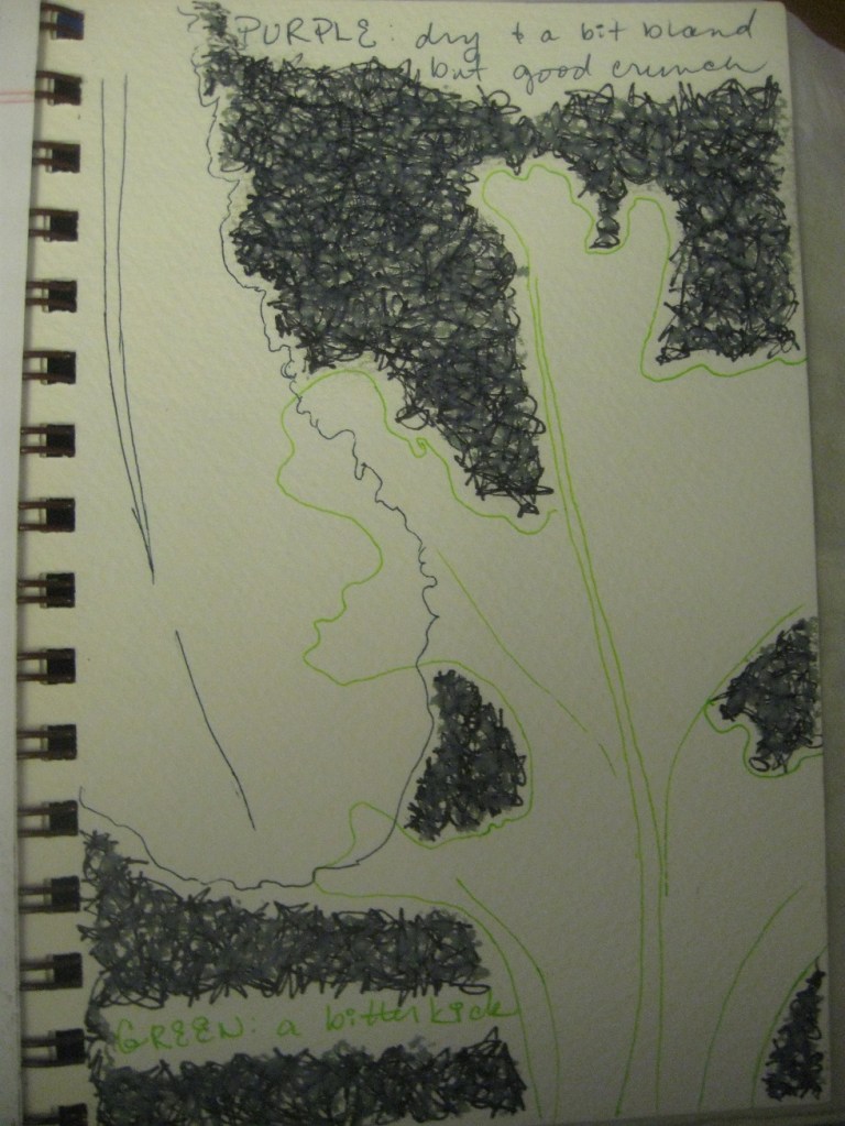 Quick sketch of lettuce leaves. I like the background pattern, but I think it may be a bit too much...