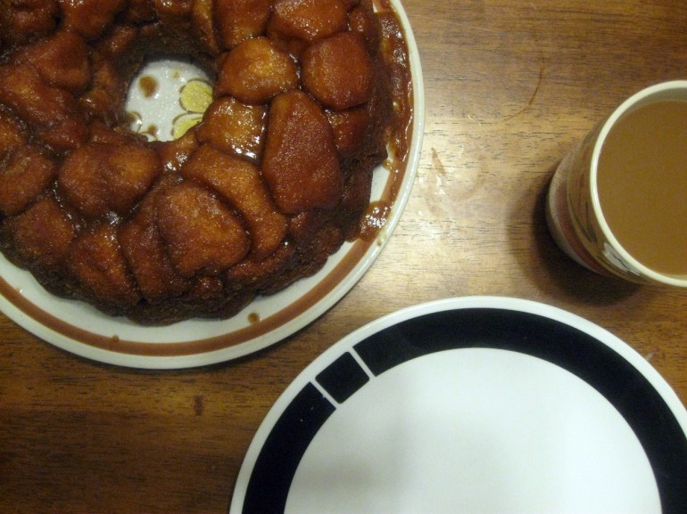 While there may not have been much crocheting going on around here, there was a ton of cooking. Monkey bread, quesadillas, pork tenderloin and roast veggies all meant we were doing dishes all weekend. But it was well worth it and the house smelled wonderful.