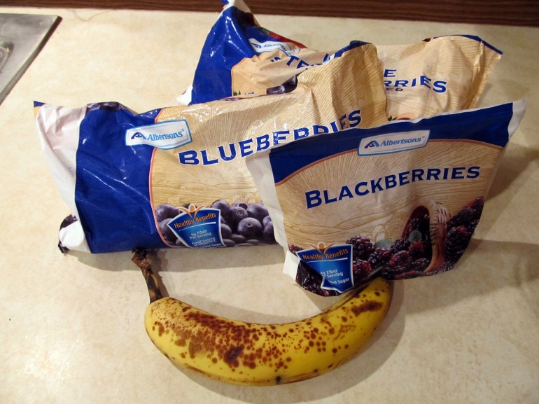 Since I am regularly showing off food here, I figured it would be nice to share a recipe today. But instead of showing off something complicated, overly unhealthy or just strange, I wanted to keep it simple. One of my favorite to-go breakfasts is a fruit smoothie. It’s my breakfast two or three times a week. I do it a lot of different ways, depending on what I have on hand, but today I will show you my favorite flavor — lots of berries! So here we go.