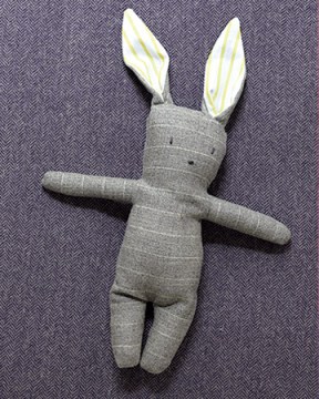 This is the bunny I am making. The pattern and photo are from Martha Stewart's website. It looks perfect -- casual and squeezeable.