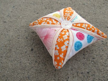 Maybe I am a little too excited about this, but my pincushion looks wonderful and I am thrilled! I think it’s just the combined rush of completing something AND getting to give it away to some lucky person. Even better that it turned out nicely on the first try.