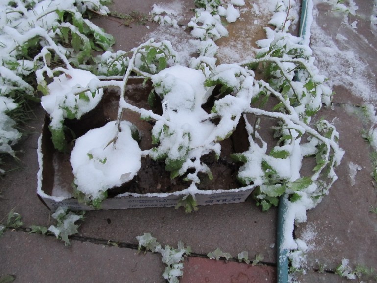 Good luck with the contest! Sorry to see your tomatoes in such a state. I heard they were expecting snow a couple hours south of here (I’m in Saskatoon, Saskatchewan) and it looks like you got some of it…. Ah, the weather in our part of the continent, eh?
