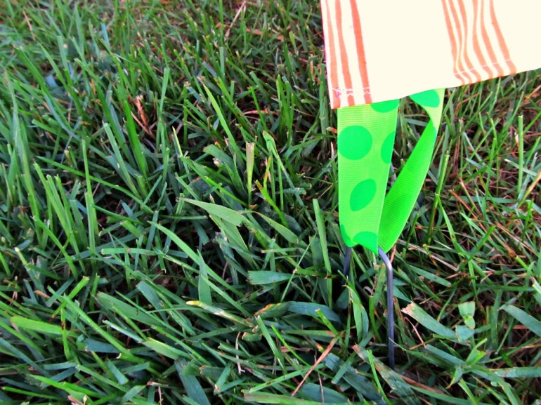 Ribbon. Both ribbons used in this tent were also headed for the landfill. Once again, a retailer called them last seasons’ colors. People are so strange.