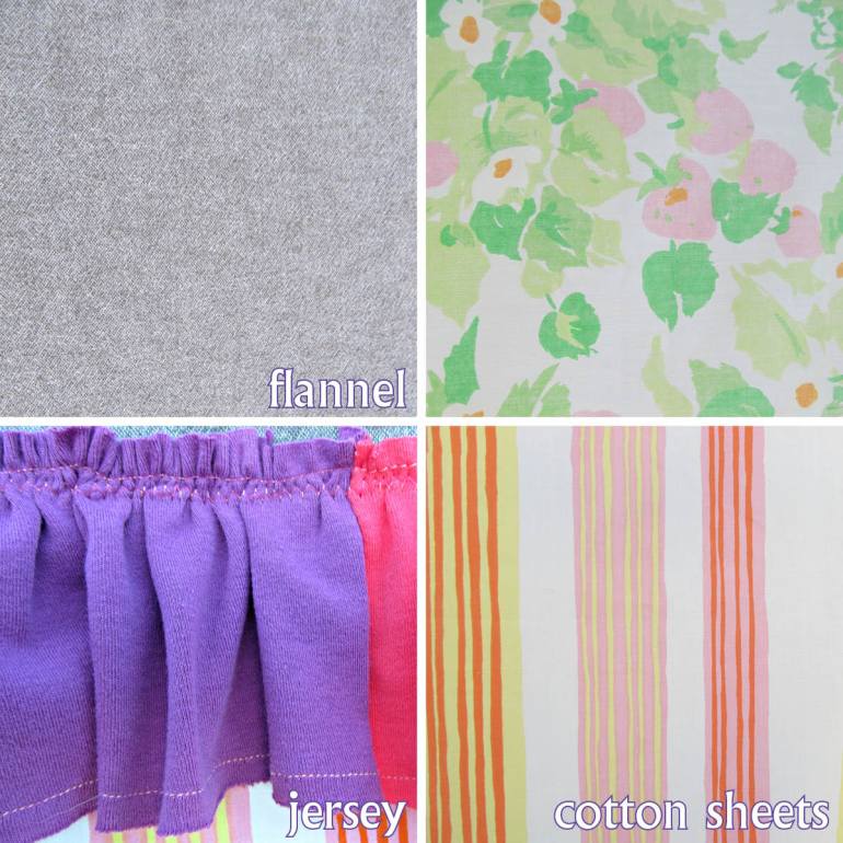 Jersey. I have a tote filled with huge pieces of jersey. I got them from a local artist. Her friend had saved them from a t-shirt factory that was going to incinerate them. They were color control samples, and they were last season’s colors