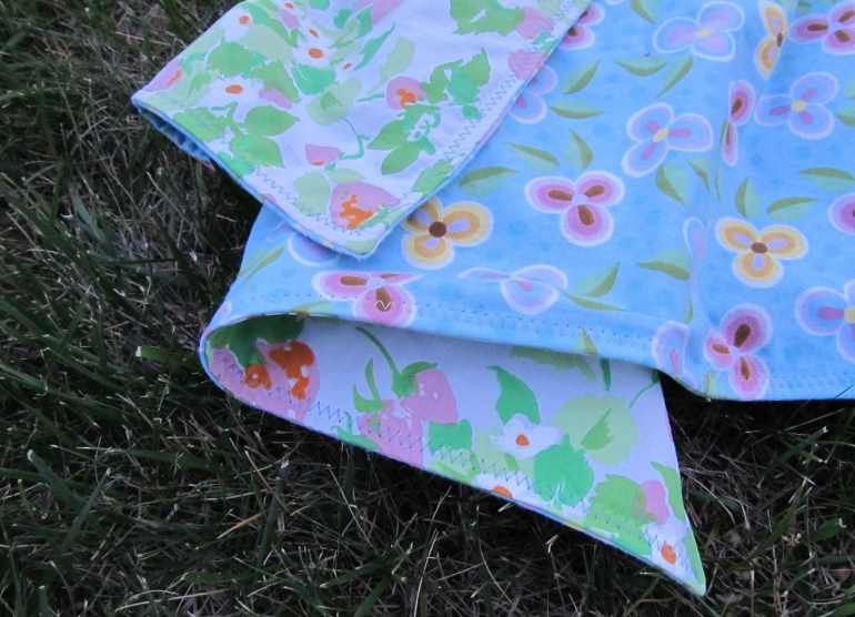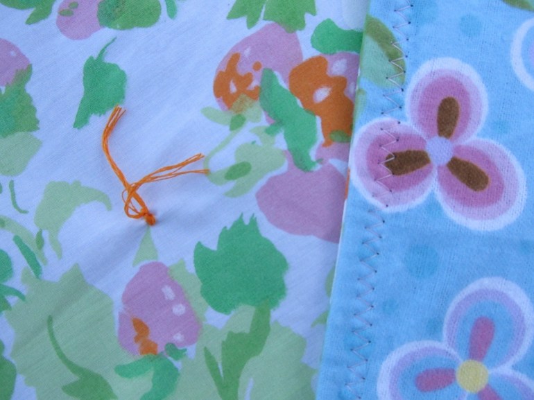 I did have a bit of an advantage in making this project go fast. I already had a large piece of the blue fabric that was more or less square. So I trimmed it down a touch, and away I went. In making baby blankets over and over, I have found a favorite technique. Best of all, it’s a simple one. Instead of messing around with any sort of binding, I just layer everything together, stitch up and turn it out. Then I do take the time to press the seams and finish off the edges with a zigzag stitch. While it sounds really basic, this way of making a blanket isn’t just easy, it’s practical. Every single layer is sewn together all the way around twice. So no matter what a little kid puts it through and how much it’s washed, it will stand up. I also made sure that every layer is pre-shrunk cotton. This means it couldn’t be more washable. If you think the blanket looks a little light, you’re right. This baby is due at a time of year when it can be super hot or starting to get cold. Plus, you can always add layers.