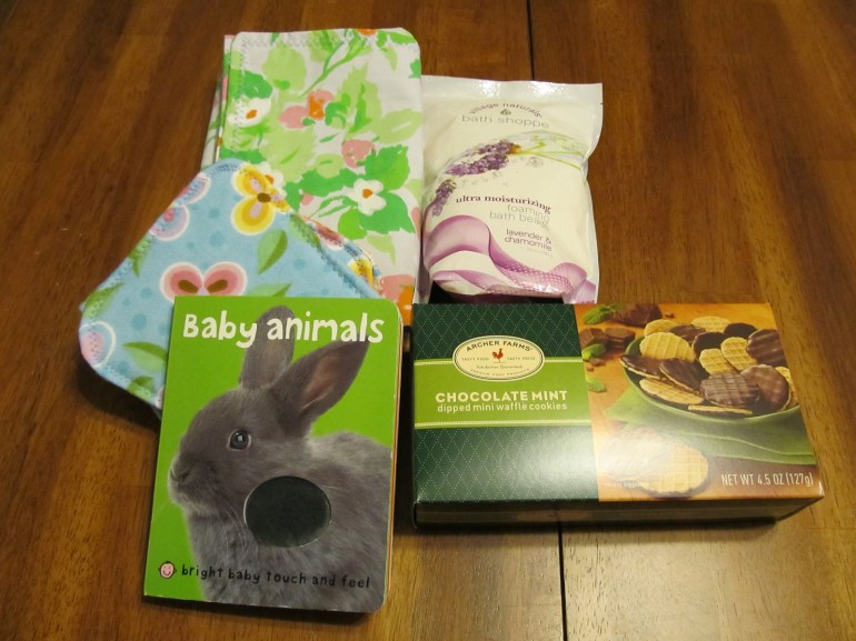And just one quick word on the entire gift. You probably already know the bath salts and cookies are not for the kid. If you’re a mom, you get how much a tiny gesture like that can mean. Being pregnant sometimes means you are getting talked to a ton while somehow still being ignored. I like to think throwing in a little something for mom really helps her morale.