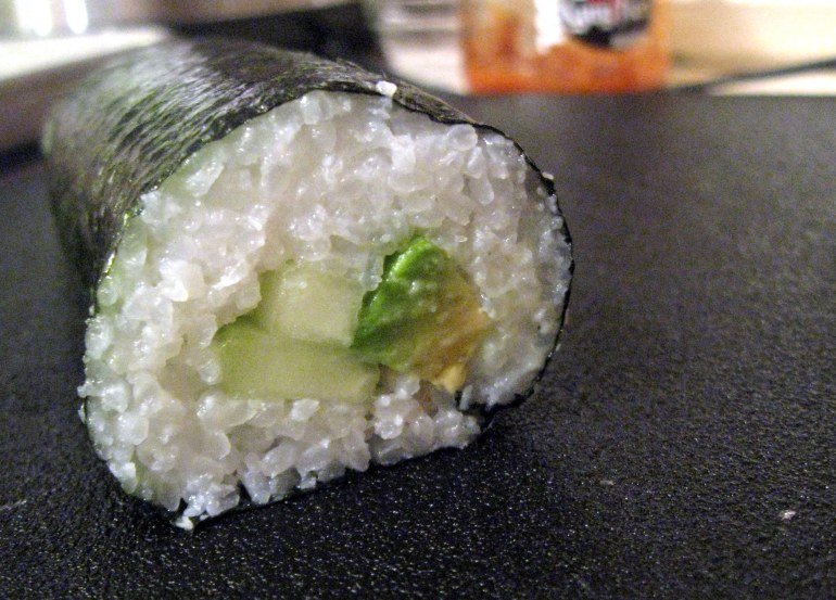 Okay, I know this is a fairly minor victory, but I am thrilled. And I don’t know why I waited so long to try making my own veggie rolls at home. It worked out perfect though because the avocado was perfect and we had just picked a new cucumber out of the garden. Once I get flavoring the rice down a bit better and nail the proportions, I will be really thrilled. So I guess I just came on here to gloat inspire my reader to try new things.