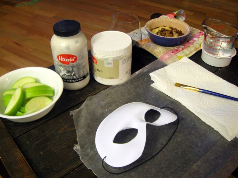 Recipe for success? Take some time at work for breakfast with awesome co-workers, survive the rest of the day, come home. Do some laundry, make some dinner, sit down to dessert and painting. I may have only gotten a few base coats of color down, but at least I am starting. And bit by bit, it will get done.