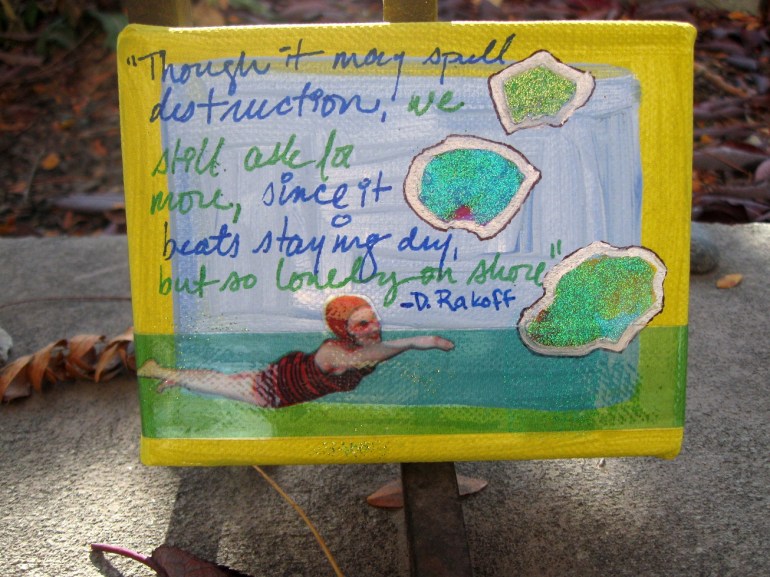 And this week, another project was partly to blame. I spent a few hours Wednesday and Thursday nights wrapping up a few small paintings. My favorite gallery in town is the Toucan Gallery and every other year leading up to the holidays they have a small works sale. Submissions are open to everyone, and the only major limitation is that no dimension of the piece can exceed five inches. It makes for a really fun mix of stuff in a good range of prices. My main goal was to keep my time and material costs low. Partly for selfish reasons, but also so someone else can maybe afford a new piece of art. So often things like that seem like a luxury. I have been lucky enough to stumble across a few pieces of art I love that were affordable, so it’s time for me to help someone else out.